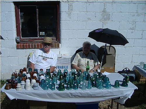We have Jim Sinsley on the left and Bill Reid on the right from Idaho. The umbrella over Bill is to keep him from overheating in the sun. I traded Bill a nice 2 tone California CD 162 that was purple above the wiregroove and smoke below it.
