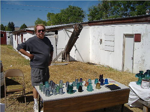 Jack Riesselman with a selection of some nice and rare glass on his table. There is even a checkbook on the corner of the table that you can write a counter check for insulators!
