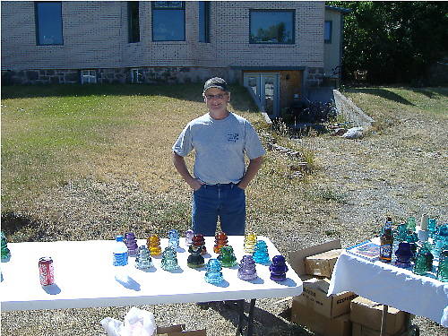 This is Steve behind his table with only a few goodies left after some brisk sales of nice items. Thanks Steve for the CD 292.5 Knowles 6 that stands about 3/4" taller than any I have ever seen and in a great amber swirled green color.