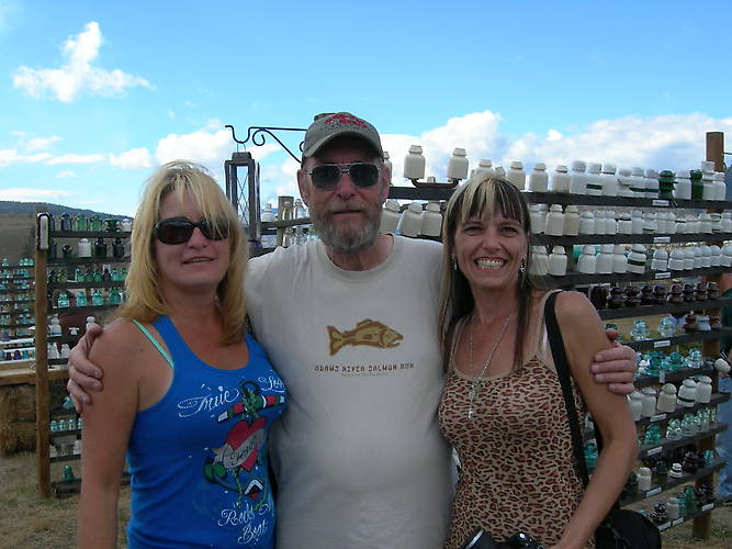 After all the autographs were signed and the crowds had moved on, the "Insulator Gurls" took a break and allowed me to have my picture taken with them. [L-R] Renee, Bob and Kim standing in front of some British and German porcelain. For some collectors, the insulators are the key to the hobby. For myself, insulators enable us to meet like minded collectors, and long lasting friendships are the result. |