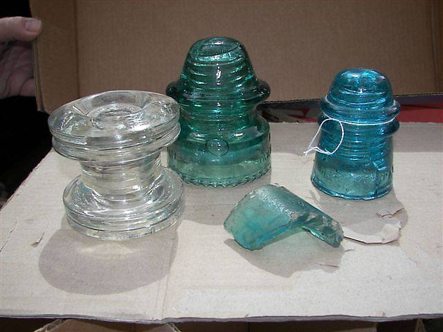 These are a couple items that will/were in the auction at the Sept. 13 2008 Racine Wisconsin Greater Chicago Insulator Club (GCIC) auction. No reserve. 10% of the final price goes to the club to pay for swap meets. CD 120 in Brooks Blue, CD 164 with a nice bubble, a clear Hemingray spool, and a piece of a Wade threadless. |