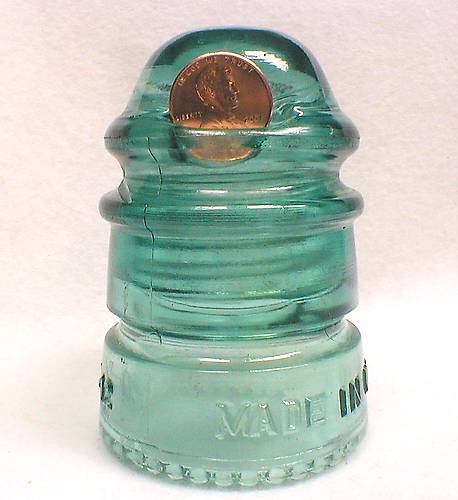 This is another fun piece in my pony sub collection. Newer production Hemingray-12 / Made in U.S.A. that has a large, open bubble pocket in the WG lip's upper slope that is big enough to hold a nickle.