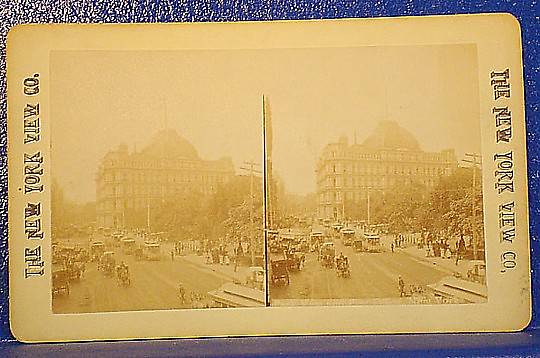 Photograph taken in near City Hall Park and the central Post Office right about 1880. Note the telegraph line on the right. These wires undoubtedly connected to all then-available locations in the US and on Earth via telegraph operators in this big city! |