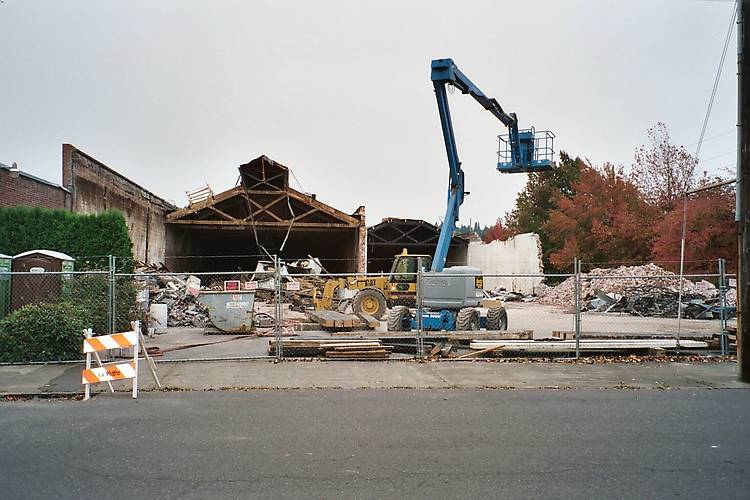 The same view of the Sellwood Car Barn taken in 2003. A sad sight. They must have removed over a 100,000 bricks! I have a few myself, since I lived just down the street from it. There are now new townhouses on this site and it is now called Trolley Barn Commons, but click NEXT to see what we saved! |