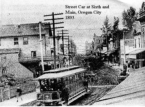A Feb.16,1893 photo of the first electric interurban trolley from Oregon City to Portland. The car is named "Helen" and the line was noted as the first long distance electric passenger interurban line in the U.S. It was powered by water power from the Willamette Falls generating plant, located on the river in Oregon City. It was a marvel of it's time and the line actually lasted in service until 1958. |