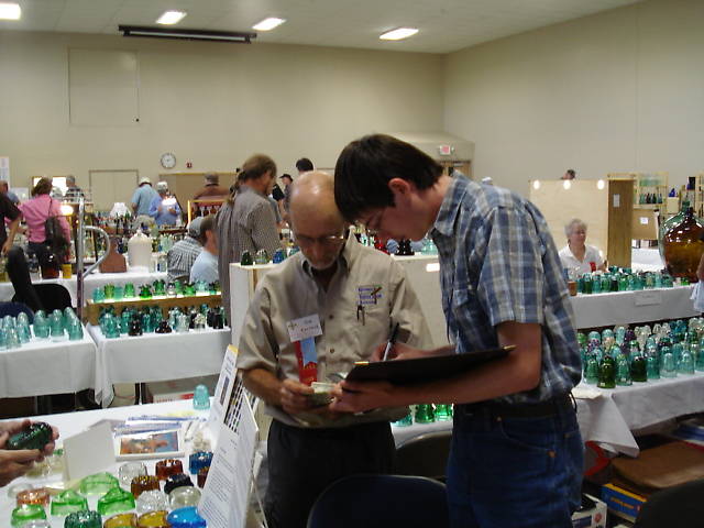Tom Katonak and Powell Brown comparing notes on sales stock and display items.