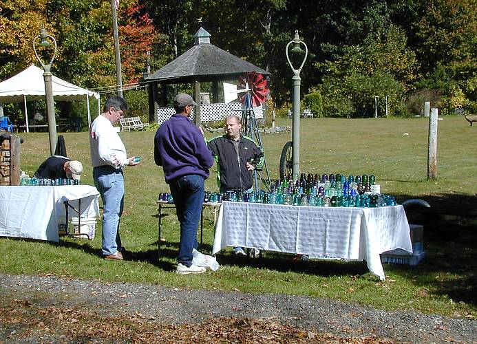 A few potential customers looking over John's colorful sales table.