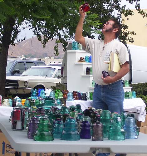 John Contreas is doing something I saw a lot during the day. No other way to look at insulators when you are outside.
