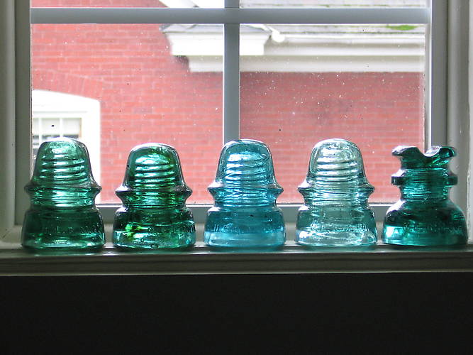 left to right: shade of green not that same as the one next to it, green with amber dome streaks and a nice amber glob near the N (the amber is actually split btwn inner and outer skirt there), blue aqua (i think) with a little milk, green aqua, and looks greenish to me with some amber in the ears. As you can all see I'm a little lacking in my color skills. Being a newbie i'm not suprised. I guess it comes with time. Any ideas on what shade of green to call the first signal and the cable top color would be great. I will go as far as saying the first signal is lighter than the green with amber one next to it. |