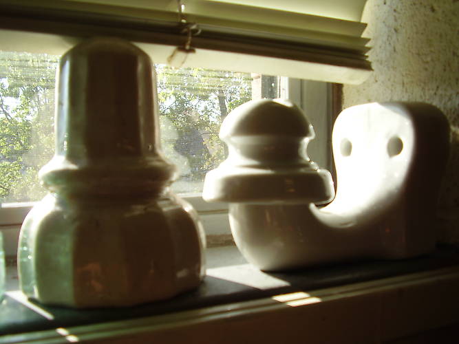 Here are my two favorite porcelain pieces. The Bennington is in great condition considering the age as is the very interesting one piece German stand-off insulator.