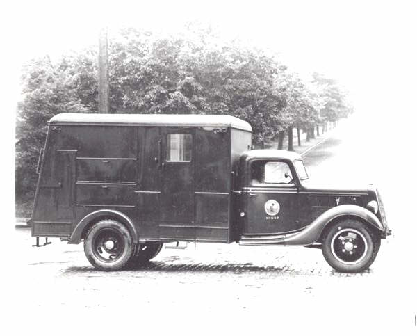 A 1937 Ford box truck owned by the West Coast Telephone Co. shown in Everett, Washington. Note the company logo on the door, a candlestick style telephone pictured against a seascape scene with the sun setting in the west. West Coast was part of one of the larger Independent telephone companies that dared to serve where the Bell System wouldn't go, or never went. This included many rural areas or suburban areas outside major cities in Washington, (in this case, Seattle) Oregon and Northern California. Another logo they used a little later than this was a 5 crossarm open wire pole on a corner inside a square with the company name in "speed" lettering on either side. West Coast was bought out by General Telephone in the 1960's and the territory is now part of Verizon's land line operations. |