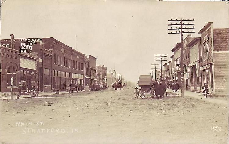 Stratford, IA c.1905 Downtown Telephone Lines, Buggies..