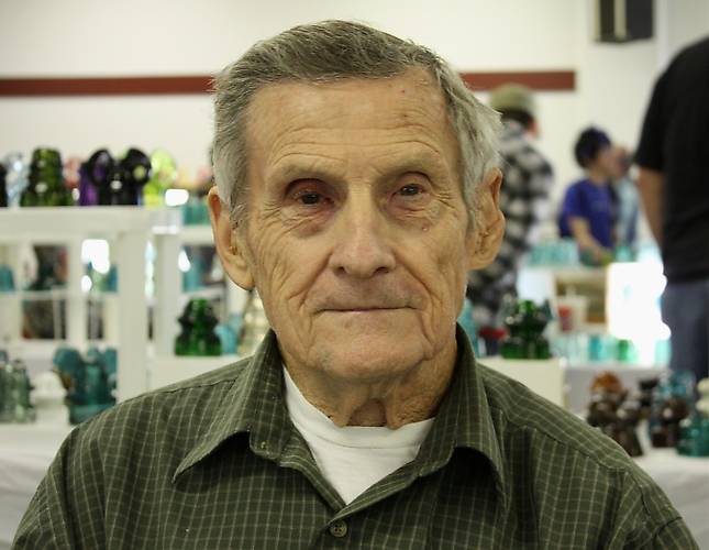 Insulator hunting pro, Bob Roosevelt. Bob is known for his love of hunting insulators and is actively enjoying that pursuit . Bob has found many rare examples of threadless over the years. He brought some of his fabulous finds which he set up for display. Remember Bob's name as there will be photos of his finds to follow. |