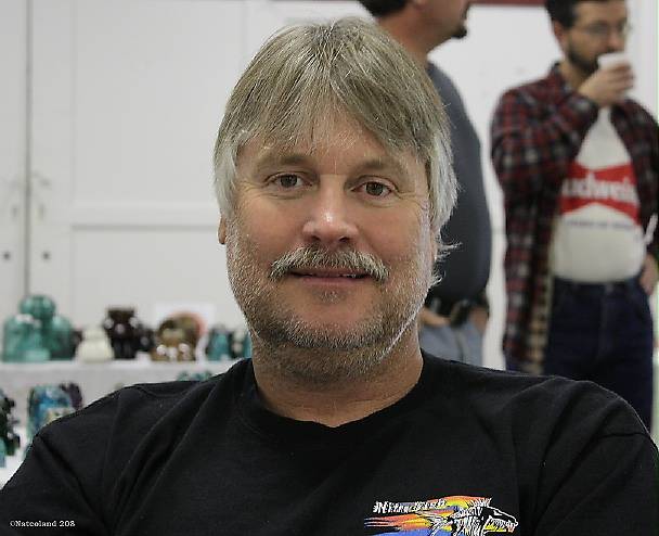 Ross Baird is known for his incredible insulator collection and the fantastic insulators he brings to the shows. Ross has helped almost every collector in the hobby add at least one special insulator to their collections. Ross is also known for his fair dealing and straightforwardness. It was a pleasure being able to talk insulators with him during the show. You would think Ross was from Wisconsin the way that hunting beard is coming in. |