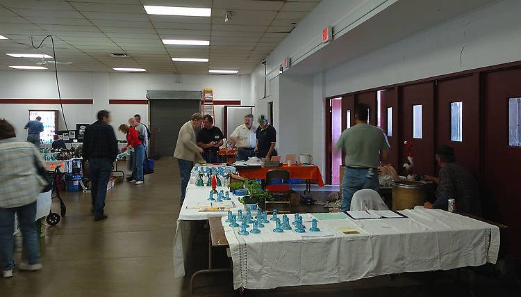 Here's the commemoratives along with the red award trophy which was to be presented at the banquet later that evening. Some of the people around the table are Howard, Dan, Dennis and Glenn.