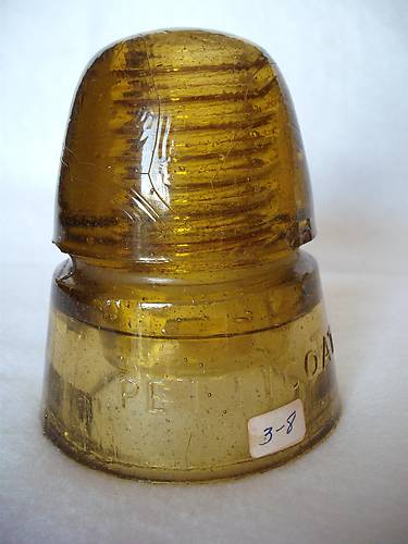 I took a few photos of some of my 2008 acquisitions that were on my 'want list'. Some were on that list for many, many years! This one is easily one of my favorites. A sweet golden amber HG Co Petticoat beehive. I had always been too late, or too short of cash to get one. Finally I landed this jewel. More pin type pictures to follow. |