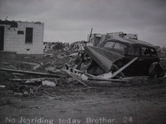 Car Damaged by 1949 Amarillo Tornado