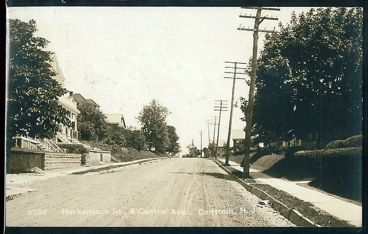 Image depicting a typical residential street in this community with telephone and electric distribution lines pararelling on the right.