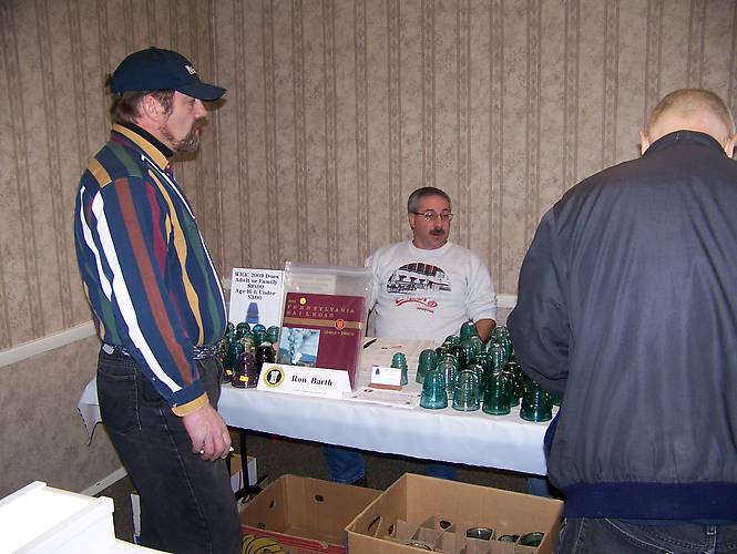 Mark Hill (r) at Ron Barths' sales table. Ron had a busy day doing his treasurer duties; taking in dues most of the day.