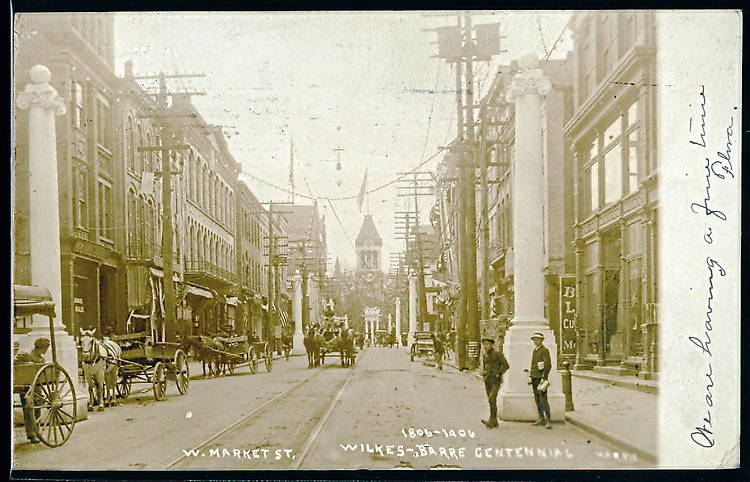 Nice business district view of this community just a little more than a hundred years ago. Atop the poles on each side of the street most likely are telephone and/or telegraph circuits. Further down each pole and on the shorter poles are electric distribution circuits. These are on the shorter crossarms. |