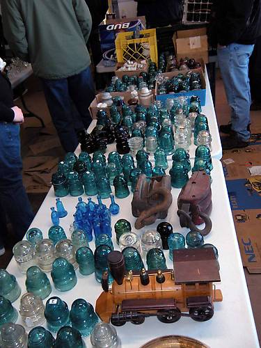 Tradition is upheld in the afternoon with the annual auction with Rick Soller running the show. Pictured here is just a few tables of goodies that were auctioned. The Greater Chicago Insulator Club receives a portion of the proceeds which helps underwrite lunch. If you are a member, just a reminder to send in your dues. |