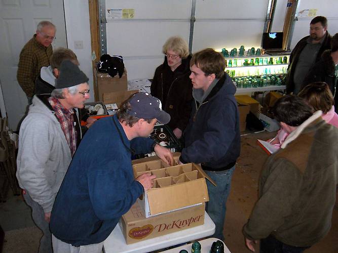 Continuing the auction to the last tables of goodies. Everyone gathers round to get a look at the offerings.