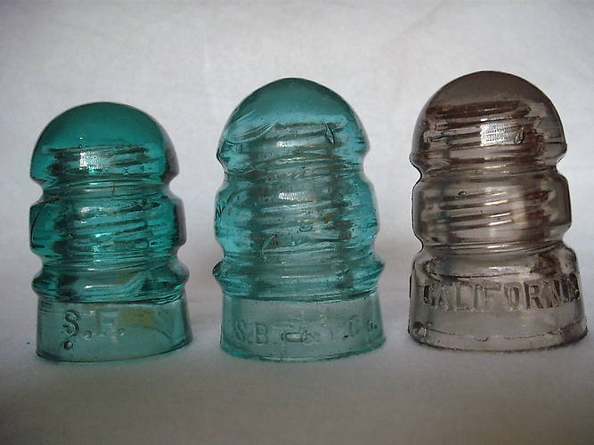 Here is a simple comparison photo of three CD 112's. They are not particularly valuable, but the 'keg' style insulators have always been a favorite of mine. The colors are about correct in the photo. The variation in shapes within many CDs is quite vast-yeah CD is the abbreviation for Consolidated Design! Enjoy. |