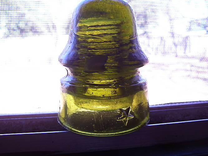 Here is a very neat CD 162 Star. It is nearly amber ......and check out the nearly one-inch piece of gravel floating in the wire ridge.