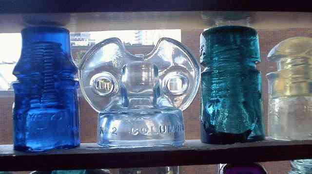 ...can you tell which one of these insulators is not like the others? Think Sesame Street... Left to right: CD 130.1 Cal. Elec. Works in cobalt blue CD 262 Columbia #2 L.S.V. in light cornflower blue CD 123 EC&M in steamy, fizzy dark aqua CD 128 Hemingray E-14B in medium opalescent |