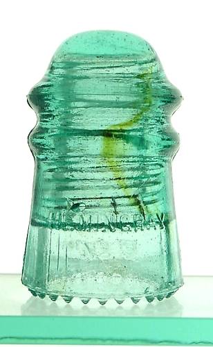 A fairly rare Evolution Type 2 lettered No.9 in a lighter than typical aqua with a light fizz and a nice "olive worm" working its was along the pinhole.