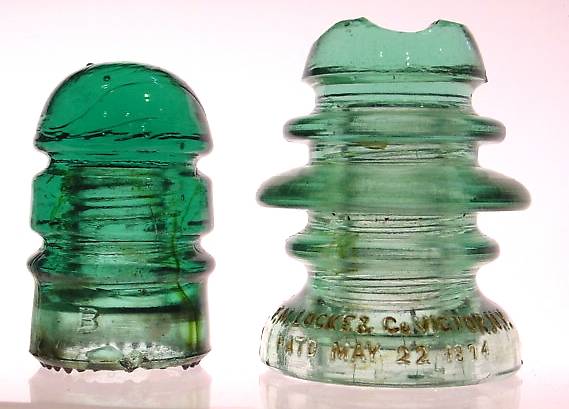 This nasty little thing walked into the show and I was allowed to take a few pix to share with you all. I apologize for the less-than-great quality. I had no control over the lighting and just a brief moment to get the shots. This piece is far greener aqua than any I have seen, .... most being a rather blue sort of aqua. Shown next to a typical dark aqua Brookfield for comparison. CD 204 Fred & Co. Made by Hemingray. This exotic piece was in fantastic condition with just a few nibbles from use. Found in New York by a bottle digger in 1969. There are Freds and then there are Fredless. |