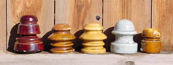 My mud finds from the '09 Seattle show. L to R : A piece I have always thought was ugly as hell, .... I just noticed it kinda looks like a little pony type set up on a special pedestal. A bottle digger had a pair of these for $5 each, but I got there too late and one was already spoken for. ~ The Fred tramps were used along the GN's coastal mainline between Bellingham and the BC border. I didn't like mud back when I was a kid, but this shape was too intriguing to pass up and my friends and I packed many of the better colored ones home. I am probably buying back the same ones I sold 30 years ago ! ~ This orb-domed dry process unit is just like one my brother and I found as a fence post ornament in the fall of 1972. The one we found was a metallic silvery finish over brown. He has it to this day. I just now found another ! ~ The last one is just one of those fat, ugly little Lima ponies in a nice chili-cheese glaze. Can't have too many ugly little ponies, now can we ? All this for under 50 bucks. One more reason mud ees goot ! |