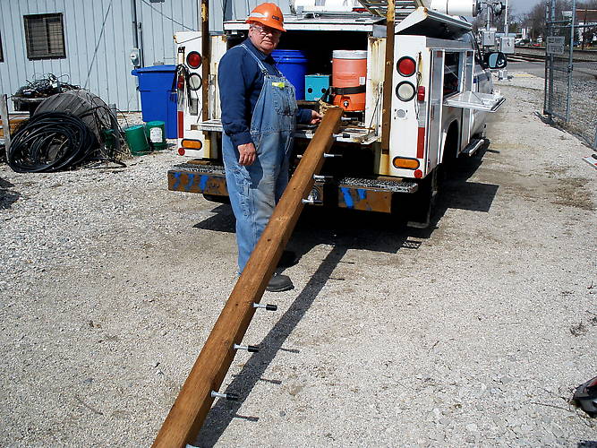 While out photographing a few beehives I met this lineman working at the CSX supply pen near my house. He was preparing some new crossarms for installation to replace some old arms with glass on them. Not sure exactly what is going on these new polypins but I suspect the plastic CEECO and Delta star pieces. Inside the pen I DID see some dove grey OB signals and brown porcelain signals that were destined for the 440 volt lines. He's got a job I'd love to have! While I chatted with him, he asked a lot of questions about insulators, ages and where he could get some pre-1920's glass, so I gave him the insulators.info website address. He said he was interested in CREB glass but he thought he'd have to pay a lot for it because of the age, so I told him to give ICON a look and to check out the sale folders. We might well see him join! |