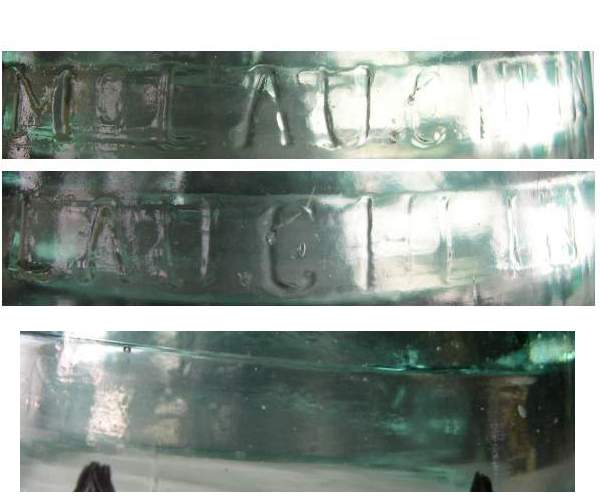 Pictured here is a composit picture of an insulator that I believe is unlisted. It is somewhat lightly embossed on the name side and the No 19 is almost invisible. The other difference is that the A is missing the cross bar. The insulator has RDP so is like / similar to EIN [010] in that there is a C in place of the G. I have had some discussion with other collectors and encourage more. Do you have one of these? |