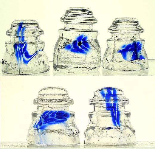 Just got these gems in and I am impressed! These Holly City minis with the cobalt blobs are the nicest so far. There were only 3 solid pours made and only one solid pour of the 3 has a ruby red blob of glass in the middle of the cobalt. Unfortunately when backlighted, the red blob doesn't show red but black. I am not sure how many Rich made of the cobalt blob mini's,but I think it was a pretty limited run. They'll look great with my collection of Mid Ohio helmet minis. Enjoy! |