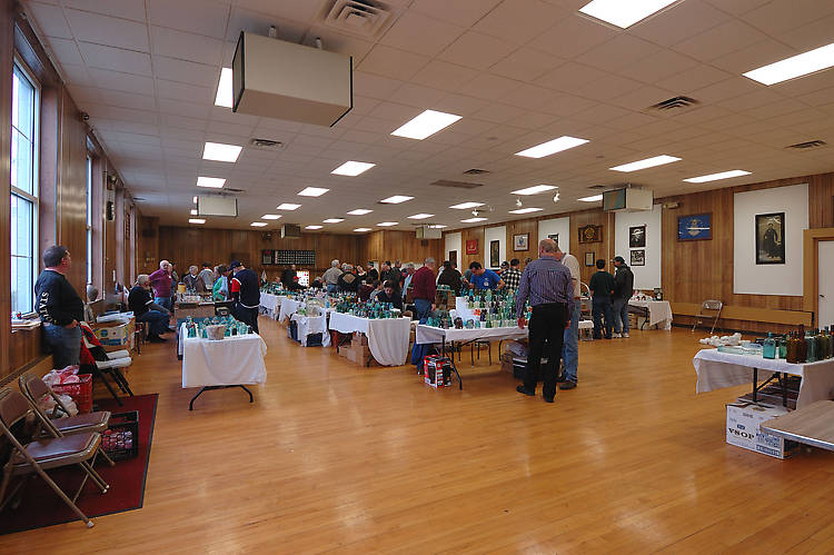 A view from another angle showing part of the table missing from the last picture. This table had some cobalt bottles which were as vibrant as the best glowing Hemingray signals I've seen.