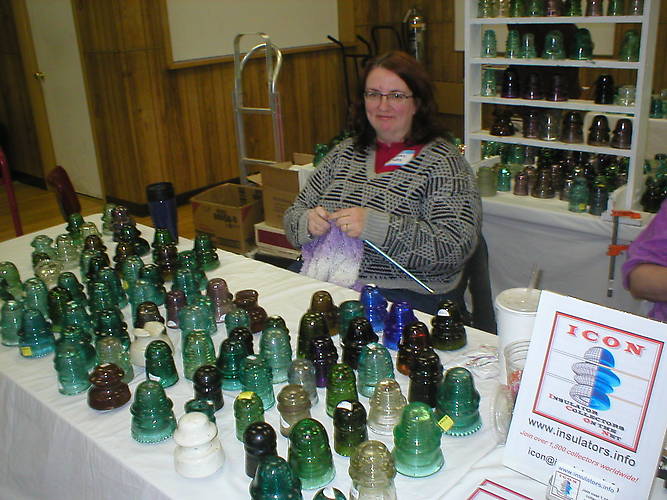 Here's Ginny enjoying some creative knitting during a few quiet moments during the show.