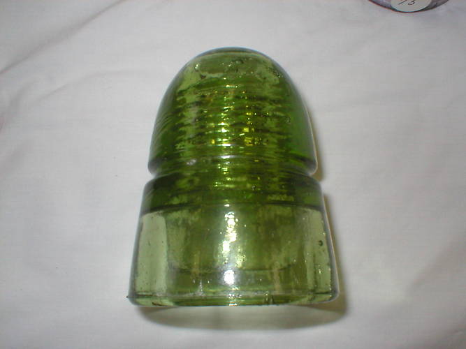 Here is another one of Bob Longe's outstanding insulators brought for sale. Bob described this one as "light yellow olive or citrine charteuse". And to top it off the condition of this one was fabulous. Wow!!