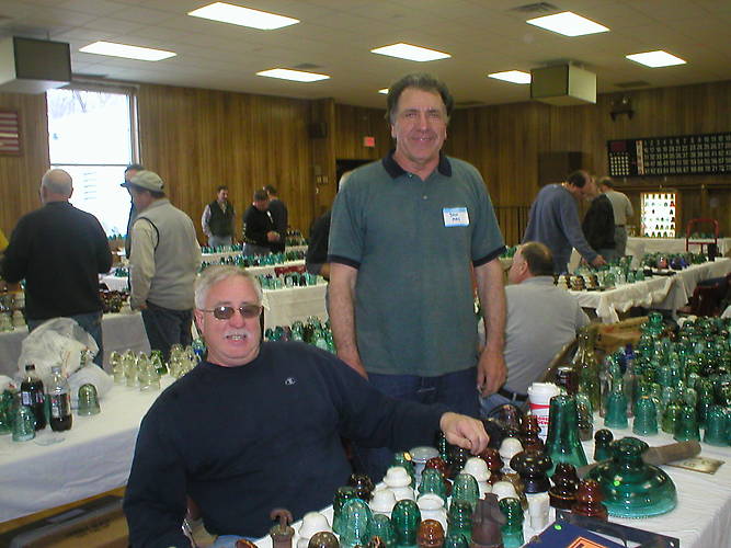 Long time YPCIC members Bob and Dan (left to right) are all smiles while in front of their sales table lined with all sorts of insulators and interesting go-withs.