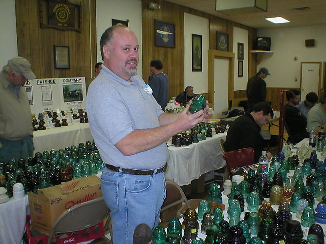 It was a real pleasure having Doug set up and to talk to him during the show! Everyone enjoyed seeing him! He came all the way from North Carolina and has been an active YPCIC member for many years. Here he is telling me about an incredible CD 134 unembossed Pennycuick in jade milk glass he had for sale. Thanks for your great and ongoing support, Doug! |