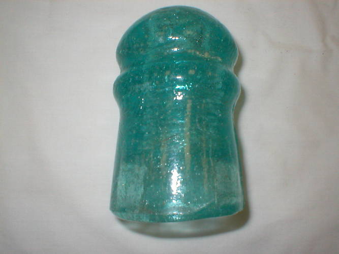 There were two "walk-in" pieces that I am aware of and this is the first of them. This incredible crown embossed Brookfield (CREB) is absolutely filled with champagne bubbles and little white specks giving it a jade green appearance! It was sold for a pretty reasonable sum. I would safely say that this piece would look dynamite underlit! |