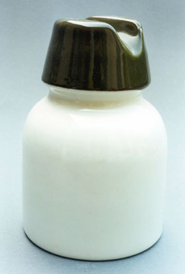 Large "bell" insulator for up to 3 kV power lines. This rare and unmarked specimen has an unusual two color finish.