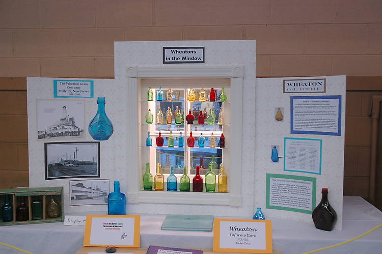 This is Jay Dondorf's best of show display of Wheaton glass bottles. Note that the Wheaton Glass Co. was in Millville, NJ, not Wheaton, IL! Lots o'color here. Please use view original to see the details.