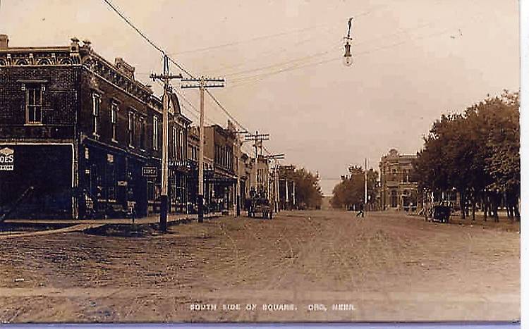An enclosed style carbon arc light is suspended over this business community's business center. Note that the span wire supporting it is done so via a stancion atop the pole on the left. A locking pulley/winch mechanism at ground level on this pole was incorporated so that the fixture could be periodically maintained with ease from the ground. |