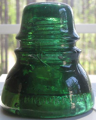 Emerald Green, amber swirled, Brookfield insulator. The second one the nice collector gave to me.