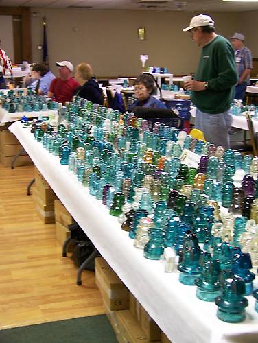 As always, a super offering of insulators from the sales table of Charlie and Sandie Irons. --- Also one of the few moments that Charlie is still and not moving around the show floor !!