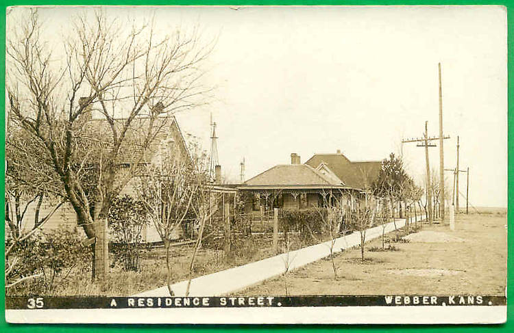 Webber, KS 1905 Street Scene, Pole Lines, Windmill, etc.