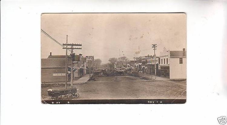 Shown are some telephone open-wire circuits on the left and those carrying electric lighting service upon the pole line that you see on the right.