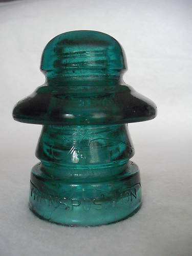 This is a cool transposition insulator embossed: N0 2// Transposition. EIN [010], yeah the smooth base variety. Color, as shown, dark aqua. Not a particularly unusual item, just a good looker. Purchased last year.