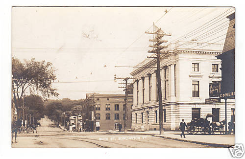 Most of the cables upon this pole line were for electric lighting and trolley power. The long pipe mast arm supported an enclosed electric arc light. A pulley/winch mechanism at eye-level on the pole allowed the utility to lower and service its carbon rods every seven to ten days. |